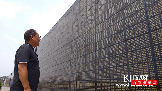 唐山大地震幸存者在地震罹難者紀(jì)念墻下緬懷逝去的親人。長(zhǎng)城網(wǎng)記者攝