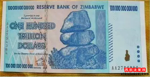 別看這張貨幣的面值是100兆(100萬億)