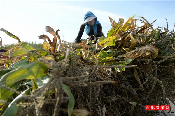 9月28日,在定西市隴西縣德興鄉(xiāng)營(yíng)門村,一位農(nóng)民在清理自家地里已經(jīng)旱死的玉米。