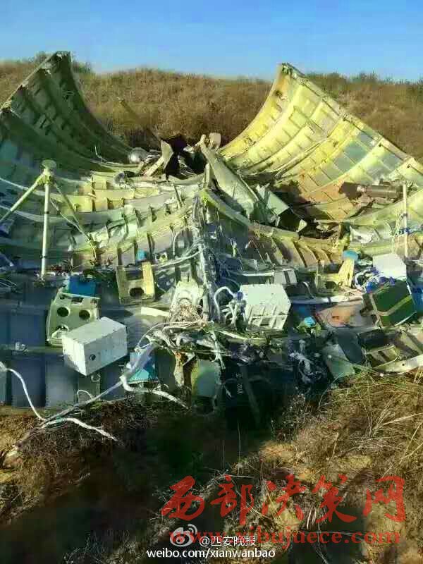 神舟十一號載人飛船在今天(17日)在酒泉衛(wèi)星發(fā)射中心,由長征二號F遙十一運載火箭搭載兩名航天員發(fā)射升空,發(fā)射取得圓滿成功,其分離的整流罩在榆林市榆陽區(qū)大河塔鎮(zhèn)云化綠能廠區(qū)東南方向找到。