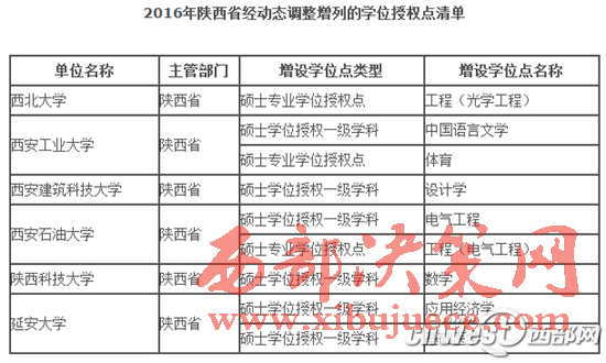 2016年陜西省經(jīng)動(dòng)態(tài)調(diào)整增列的學(xué)位授權(quán)點(diǎn)清單。