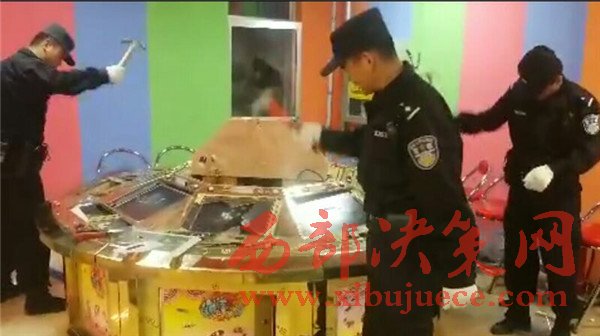 16時整,城關(guān)公安分局治安管理一大隊的警員沖進幻影游藝城,當場控制各類參賭人員30余人、賭博管理人員十余人,查獲各類熊貓機、釣魚機、單挑機等涉賭機器72臺,繳獲賭資現(xiàn)金近五萬元。警員在履行執(zhí)法手續(xù)后,對72臺涉賭機器進行現(xiàn)場銷毀,執(zhí)法有序進行,未損壞其他無關(guān)設(shè)備設(shè)施。