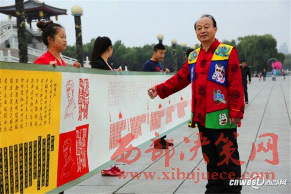 10月23日,西安“剪刀書法第一人”呂國(guó)嶺在西安大唐芙蓉園展示他剛剛完成的剪紙巨幅作品《長(zhǎng)征組歌》。