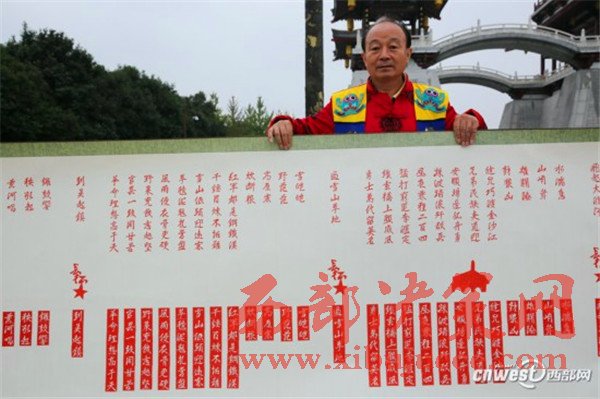 呂國(guó)嶺用了整整一個(gè)月時(shí)間,把《長(zhǎng)征組歌》和毛主席《沁園春.雪》中的字剪成陰陽字,再將剪好的陰文和陽文裝裱好,組成一幅15米長(zhǎng)的《長(zhǎng)征組歌》,巨幅剪紙中還有毛主席、朱總司令、紅五星、寶塔山等圖案。呂國(guó)嶺說他是聽著《長(zhǎng)征組歌》長(zhǎng)大的,長(zhǎng)征精神一直激勵(lì)著他,為紀(jì)念紅軍長(zhǎng)征勝利80周年,他用他的巧手剪出了巨幅剪紙作品《長(zhǎng)征組歌》。