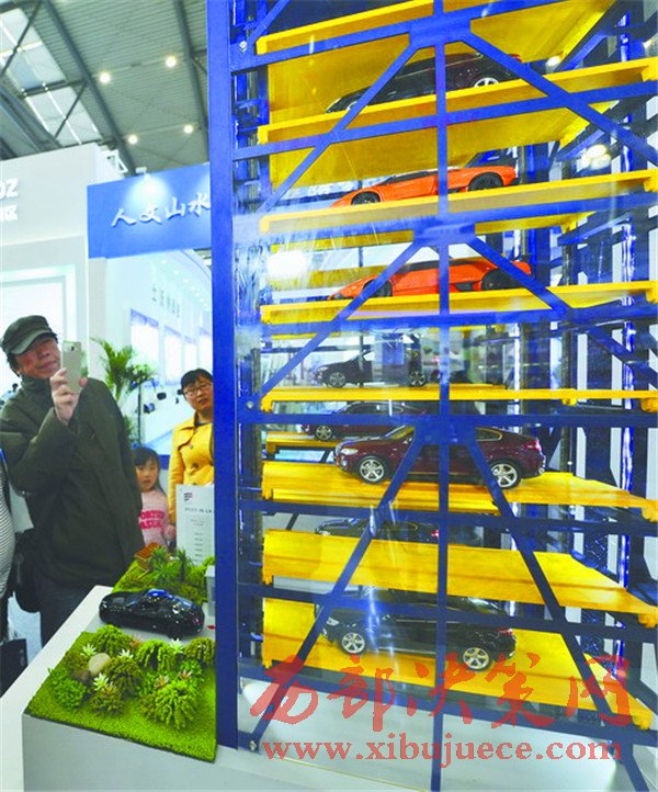 絲博會上,陜西隆翔停車設(shè)備集團推出的APP預(yù)約立體智能停車的停車場,吸引了大量參觀人員的駐足圍觀。