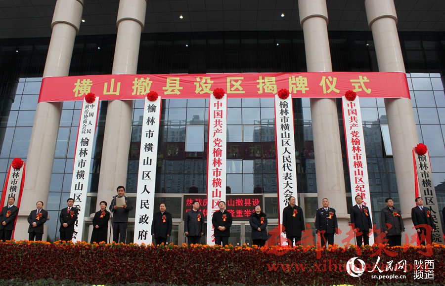 11月9日上午,橫山撤縣設區(qū)黨政干部大會暨揭牌儀式在橫山舉行。榆林市委書記胡志強,市長尉俊東,市政協(xié)主席劉春橋,陜西省民政廳副廳長郭慧敏等出席掛牌儀式。中國共產黨榆林市橫山區(qū)委員會、榆林市橫山區(qū)人民政府正式掛牌。未來,榆林市行政區(qū)劃將變?yōu)?區(qū)10縣。