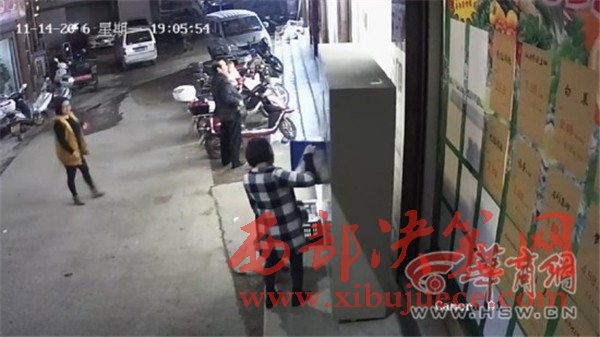 胡先生調(diào)取了事發(fā)時(shí)超市監(jiān)控視頻,華商報(bào)記者在視頻里看到:11月14日19時(shí)05分,一名婦女帶著小男孩走出超市,來(lái)到超市門口擺放的儲(chǔ)物柜取物。就在這名婦女剛拿出物品的一剎那,近兩米高的儲(chǔ)物柜突然倒下砸中兩人。巨大的儲(chǔ)物柜將孩子整個(gè)壓在了下面,婦女雙腿被壓住。周圍群眾幫助抬起了儲(chǔ)物柜。華商報(bào)記者注意到,從婦女取物到柜子倒下,事發(fā)經(jīng)過(guò)不到十秒鐘。