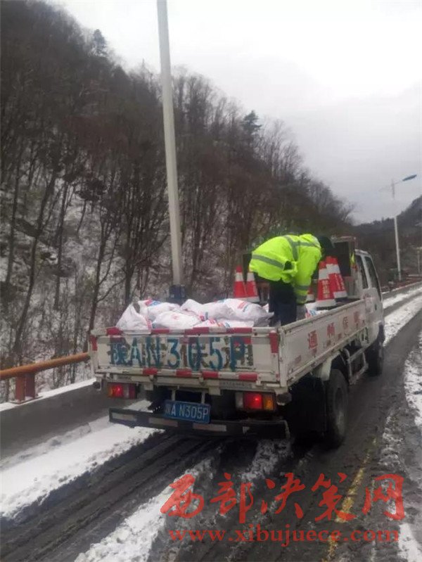 陜西高速集團西漢分公司緊急啟動預(yù)案,所有工作人員包括路政、養(yǎng)護,消防、機關(guān)管理、收費班倒休人員,全部上路進行疏導(dǎo)保暢,高速集團主要領(lǐng)導(dǎo)第一時間趕往現(xiàn)場指揮疏導(dǎo)。西漢分公司出動了所有的除雪設(shè)備,撒播融雪劑和防滑沙,對造成擁堵的車輛實行緊急救援,采取生火解凍油路,路面鋪砂解決防滑,拖車清除事故車輛等方式疏導(dǎo)擁堵點。同時還從關(guān)中和陜南緊急調(diào)撥除雪設(shè)備和人員上路除雪,全力幫扶困在路上的車輛和人員,機關(guān)管理和收費人員在車輛被困路段及時向被困人員解釋道路擁堵情況,積極幫助受困人員,送去了礦泉水、面包和火腿腸等應(yīng)急食品。