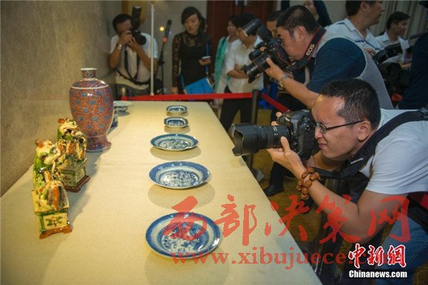 11月23日,“海外文物入藏國家南海博物館”新聞發(fā)布會(huì)在??谂e行,十件在海外漂泊數(shù)百年的珍貴陶瓷文物,經(jīng)兩家國內(nèi)企業(yè)在紐約佳士得拍賣會(huì)上成功拍下后,無償捐獻(xiàn)給國家南海博物館。圖為入藏中國國家南海博物館的海外文物。