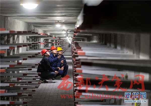 11月24日,解放碑地下環(huán)形電力隧道的一段支線電力隧道內(nèi),兩名國網(wǎng)重慶市區(qū)供電公司的技術(shù)人員(右一、右二)在對預留的商業(yè)用戶接入隧道的電力設施設備進行竣工驗收。當日,經(jīng)過3年多的緊張建設,重慶地下環(huán)形“電力高速路”——解放碑地下環(huán)形電力隧道工程順利通過竣工驗收,并正式投入運行。解放碑環(huán)形電力隧道總長2408米,其中1198米的干線電力隧道已經(jīng)成功接入解放碑商圈及周邊地區(qū)的4個110千伏變電站形成環(huán)線,支線電力隧道1210米也開始陸續(xù)接入用戶。據(jù)介紹,作為重慶市重點工程,2013年7月開工建設的解放碑地下環(huán)形電力隧道按照滿足未來20年電力需求設計,隧道高2.8米、寬2.4米,投入運行后將解決重慶渝中半島和重慶最繁華的解放碑商業(yè)區(qū)配電設施老化、無法擴建等問題,使解放碑商圈供電負荷承載能力得到極大加強。