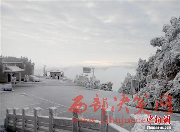 原標(biāo)題:湖南南岳衡山現(xiàn)霧凇云海 房屋建筑披冰甲