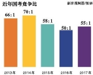 從招錄比看,平均55人競爭1個崗位。其中,競爭最激烈的崗位為民盟中央辦公廳“接待處主任科員及以下”一職,在截至報名結(jié)束前半小時競爭比就達(dá)9837:1,超過2013年度國考最熱職位的9411:1,創(chuàng)下歷史新高。
