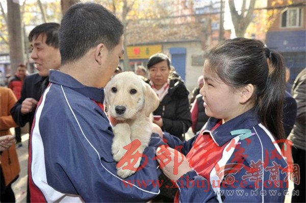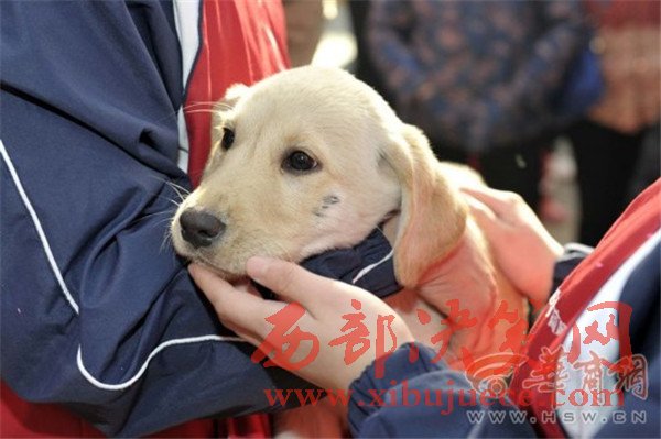 昨日上午,西北首個導盲犬基地在西安掛牌成立?;刎撠熑藦垏f:“真正培養(yǎng)出一只導盲犬大約需要18個月。要通過家庭寄養(yǎng)、專業(yè)導盲犬訓練、與盲人共同訓練,合格后才能成為真正意義上的導盲犬。在這個過程中,七成的幼犬可能被淘汰。”