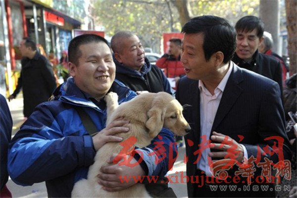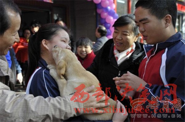 “這個毛茸茸的小家伙真可愛!”家住西門外的楊子宣抱著一只拉布拉多犬高興地合不攏嘴。