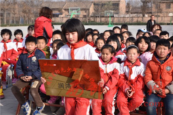 陜西省陽光少年資助協(xié)會顧問王余、會長王鳳英、秘書長溫向林、理事馬強、副會長張弘強、李江、辦公室主任王芷熹、會員代表王潤梅等;愛心人士河南電視臺睛彩中原欄目記者張文興、陜西源邦實業(yè)集團王源、劉楊等愛心團前往參加,為孩子們帶去愛心人士捐贈的一批課內(nèi)外書籍,并建成“潤鴻書屋”,藏書六百余本。此外,還為該校多名建檔立卡的貧困家庭學生送去書包、文具、手套、圍巾等學習生活用品。