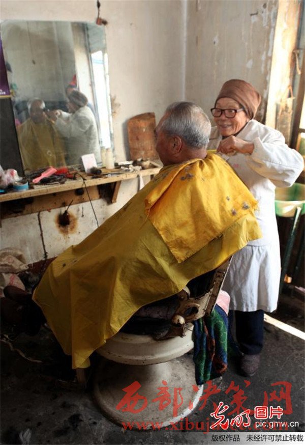 蔡瑞云幾十年來一直在河南許昌市區(qū)解放路與新興路交會處經(jīng)營著她的"老中青理發(fā)店"。雖然店面只有10平方米,每月房租300元,但每次理發(fā)收費卻只有2元,讓人感受到的是溫暖。