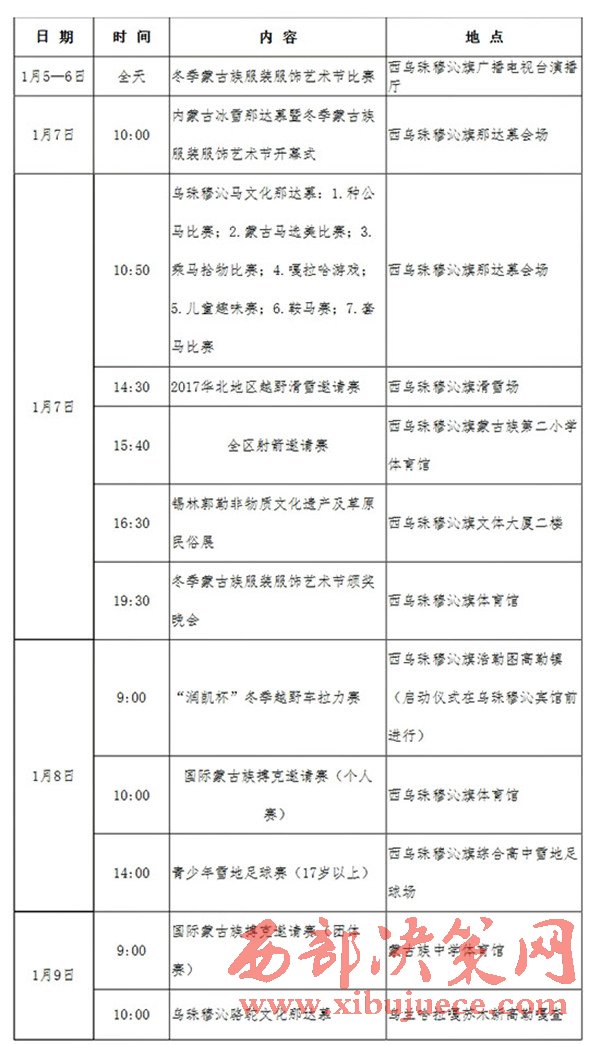 附:第十四屆內(nèi)蒙古冰雪那達慕暨第七屆冬季蒙古族服裝服飾藝術(shù)節(jié)主要活動日程安排表