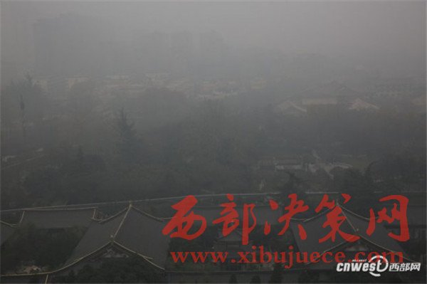 12月20日,西安市空氣質(zhì)量指數(shù)接近500,空氣質(zhì)量嚴(yán)重污染,昨日西安市首次啟動(dòng)重污染天氣Ⅰ級(jí)應(yīng)急響應(yīng),今日繼續(xù)執(zhí)行重污染天氣Ⅰ級(jí)應(yīng)急響應(yīng),幼兒園、中小學(xué)停課,機(jī)動(dòng)車限行50%。重度霧霾的大雁塔失去了千年古色,稍遠(yuǎn)一點(diǎn)看大雁塔若隱若現(xiàn),再走遠(yuǎn)一點(diǎn)大雁塔在視線中消失。登上大雁塔頂層,從東南西北四個(gè)窗口拍下的照片幾乎一模一樣。