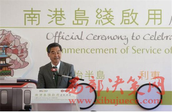梁振英在致辭時表示,他一直是香港鐵路服務的“粉絲”,十分樂于見證新的鐵路交通線的啟用。此前開通的觀塘線沿線以及此次南港島線東段的啟用,都將令香港的鐵路網絡更加四通八達。