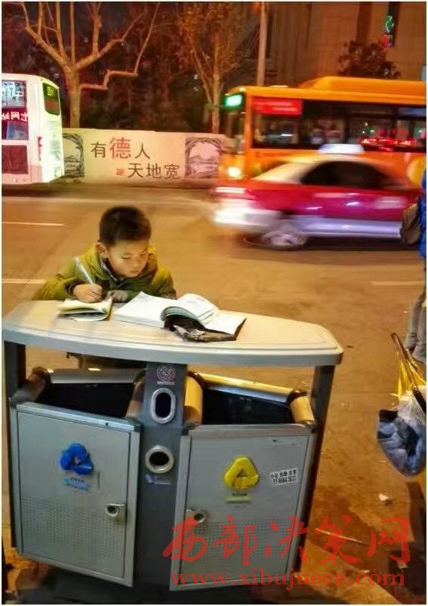 攤位旁,張女士的兒子正趴在垃圾桶上認(rèn)真地寫作業(yè)。這一幕,經(jīng)常會發(fā)生在青島臺東大酒店附近。附近許多商販都知道“路邊賣烤地瓜那家”的兒子學(xué)習(xí)很用功,也特別懂事,經(jīng)常幫母親收拾貨物,照看攤位。