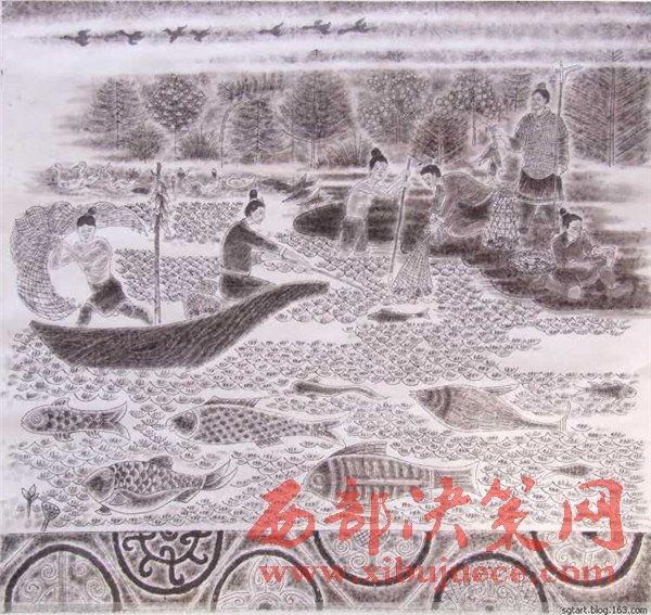 “永不滿足是前進(jìn)的動力”。為了更直觀地表達(dá)石鼓文,他發(fā)揮自己書畫的藝術(shù)天賦,潛心研究,又創(chuàng)作出了十幅《石鼓文圖》。它以中國傳統(tǒng)繪畫形式每幅畫于八尺宣紙,各件既是單幅作品,又互相關(guān)聯(lián),洋洋巨著,連接在一起近乎三丈,氣勢恢弘,再現(xiàn)了十面石鼓的原始?xì)v史景象,再現(xiàn)了先秦時期政治、軍事和民眾生活、飛禽走獸和自然風(fēng)光。對人們了解、研究先秦歷史必將產(chǎn)生積極的輔助作用。