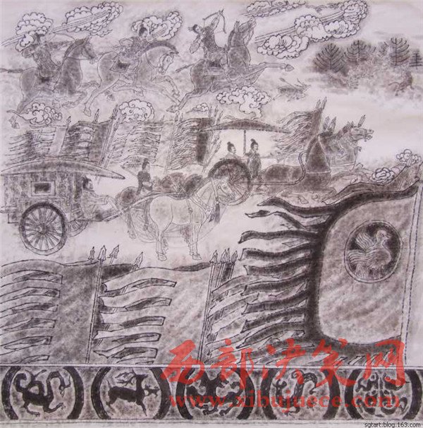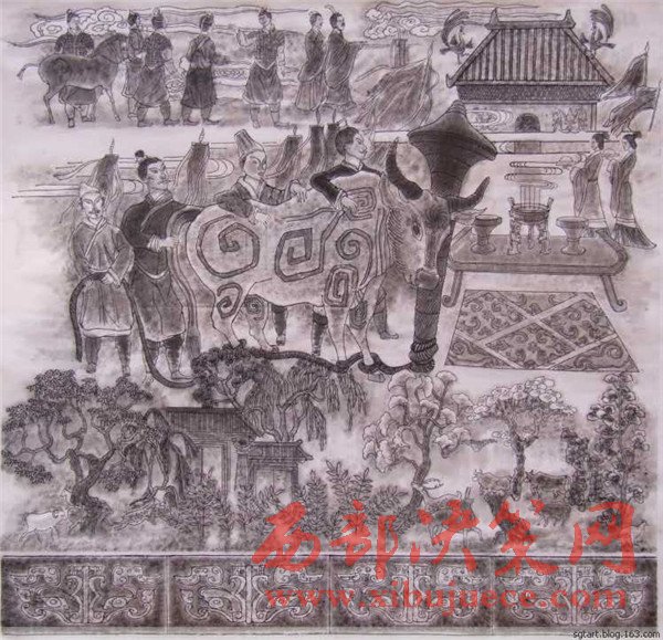 曹老經(jīng)過深思熟慮后1989年作出第一幅石鼓畫像,但他并不滿意。石鼓文的博大精深、源遠(yuǎn)流長豈能是他輕易能描繪得出來的!他覺得自己還沒有吃準(zhǔn)石鼓文的深邃含義。他明白:淺薄自滿是藝術(shù)的致命傷,能對自己自省和不滿的人,才會創(chuàng)作出能經(jīng)得起時間和歷史檢驗(yàn)的藝術(shù)佳作。曹老痛下心撕了又畫,兩易其稿后,心里還不踏實(shí),他必須尋找“最為挑剔的眼睛”。于是,他帶著十幅畫作,趕赴京城,讓石鼓專家鑒定審核。果不其然,專家們給他指出了一些問題:畫的時間不對,人物衣著不符合朝代特征。曹老虛心聽取了專家的意見,他返回寶雞,廢棄了原稿,重新考證人物的歷史特征,生活細(xì)節(jié)的一點(diǎn)一滴。他為了能精確地描繪先秦時期的人物和服飾,甚至每一件物件、器皿、圖案,他借來了秦兵馬俑博物館的圖像和資料,依據(jù)兵馬俑中人物的衣著打扮,紋飾車馬,2000年之后,第三次拿起筆重新準(zhǔn)確地描繪出了十面石鼓中的眾多人物、眾多民俗風(fēng)情。為了讓《石鼓文圖》經(jīng)受更嚴(yán)格的“審批”,曹老并沒有急于發(fā)表,而是連續(xù)奔波了幾年,直到2007年終于定稿與世人見面。