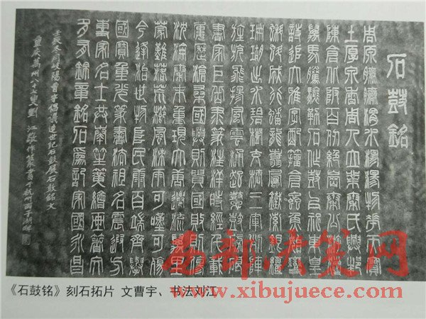 書法界權(quán)威西冷印社執(zhí)行社長劉江先生,在他近九十歲高齡時,欣然為曹宇以篆書書寫了《石鼓銘》,全文192字,48行,書法端正秀麗,布局整齊完美,堪稱篆書精品。她將鐫刻于巨型石鼓之上,可謂《世紀(jì)石鼓》。