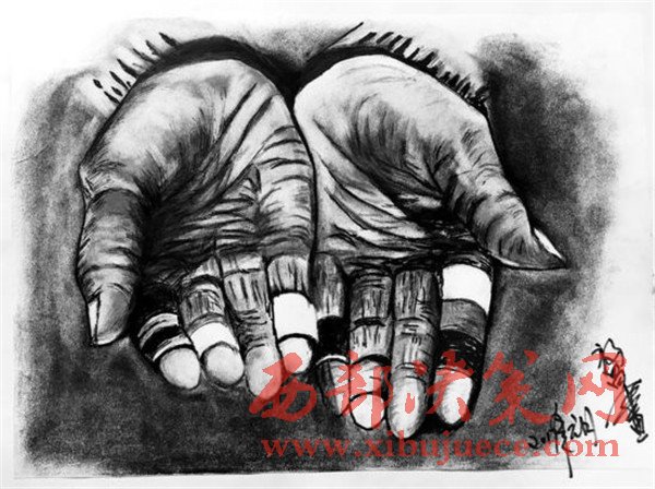 在李福昌家中,記者看到了他給保潔員畫的60張生活速寫。一眼望去,保潔員們神態(tài)、姿勢(shì)、動(dòng)作各不相同,相同的是他們都正在辛勤地勞作。“畫得越多,對(duì)內(nèi)心的沖擊越大。”李福昌還特別細(xì)心地為每幅畫作都配上合適的詞。一幅手部特寫寫著“看到這雙手,請(qǐng)您不要再亂扔?xùn)|西了”。