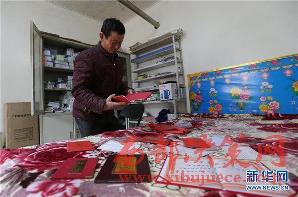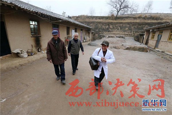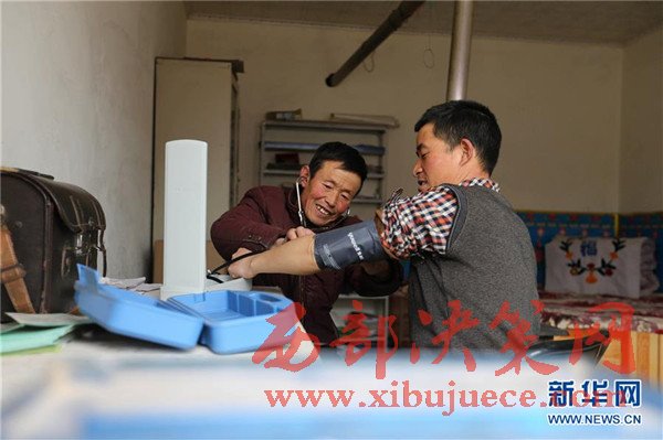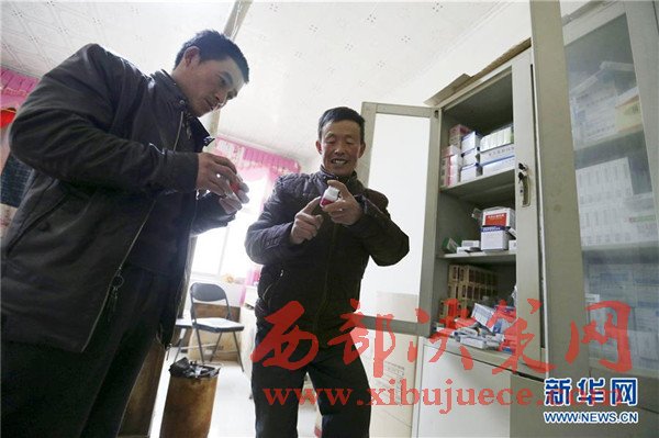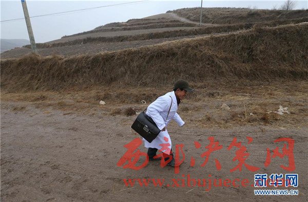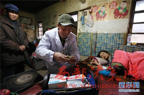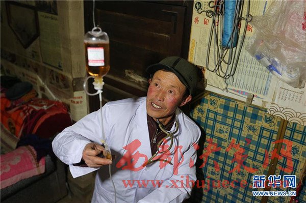 村醫(yī)牟天明在村民家中為患者診療(2月6日攝)。大年初十,在寧夏固原市西吉縣新營鄉(xiāng)二府營村泥濘的村道上,身高不足一米六的村醫(yī)牟天明背著醫(yī)療箱,一瘸一拐地前往離家5公里的患病村民家中。春節(jié)以來,這已是他第18次出診。年近六旬的牟天明在上小學(xué)時(shí)腿部突發(fā)疾病,由于當(dāng)時(shí)鄉(xiāng)村醫(yī)療條件有限,落下了終身殘疾。他沒有失去對生活的信心,從初中開始就自學(xué)醫(yī)學(xué)知識(shí),1977年高中畢業(yè)后,牟天明回村做了一名赤腳醫(yī)生,這一干就是40年。 40年來,牟天明行醫(yī)始終站在患者的角度,讓村民跑最少的路、花最少的錢解除病痛。不論白天黑夜、風(fēng)霜雨雪,只要村民有需要,他就會(huì)背上醫(yī)療箱出診,足跡遍及二府營村的每一戶人家,被村民稱為村里的健康“守護(hù)神”。