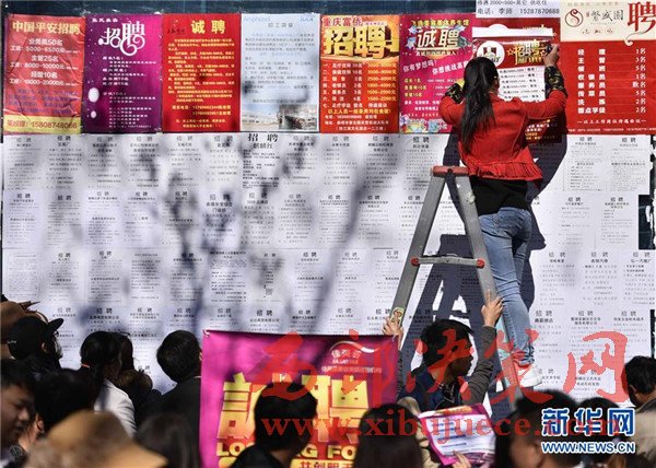 2月7日,在云南曲靖人力資源市場,一名招工負(fù)責(zé)人在張貼招聘宣傳單。春節(jié)假期過后,各地陸續(xù)迎來求職招聘高峰。