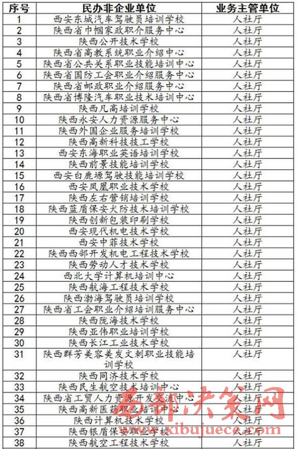 2月8日,陜西省民政廳發(fā)布公告擬對203家社會組織予以撤銷登記,名單包括西安東城汽車駕駛員培訓學校、西北大學計算機培訓中心、陜西航空工程技術學校、陜西省高校學生就業(yè)指導培訓中心等。名單中的社會組織在公告起60日內,可書面申辯主張權利。