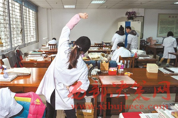 古籍修復(fù)工作現(xiàn)在仍是冷門行業(yè),修復(fù)師們頭上頂著“大國工匠”的光環(huán),背后卻有很多的艱辛。古書拆裝過程中會遇到大量陳年的灰塵、蟲卵等,打噴嚏、犯鼻炎、過敏等現(xiàn)象時有發(fā)生;保持伏案姿勢一整天,幾乎所有的修復(fù)師都有頸椎和腰椎疾病。而古籍修復(fù)從業(yè)人員的待遇并不高,對年輕人缺乏吸引力。每年會有許多實習生來到中心實習,但實習結(jié)束,不少學(xué)生就離開這個行業(yè),能夠留下來的,寥寥無幾,更多人把它當作副業(yè)或者興趣愛好。