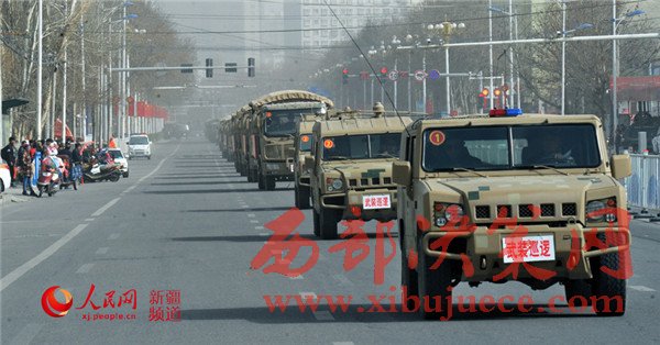 隨著一聲令下,戰(zhàn)士們登上戰(zhàn)車,警燈閃爍,警笛齊鳴,氣勢磅礴。一支威武之師、鋼鐵之師、正義之師吹響沖鋒號,在烏魯木齊市主要街道和重點部位進(jìn)行武裝巡邏。