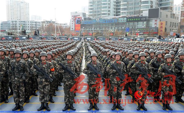 2月27日上午,新疆維吾爾自治區(qū)在烏魯木齊舉行反恐維穩(wěn)誓師大會。