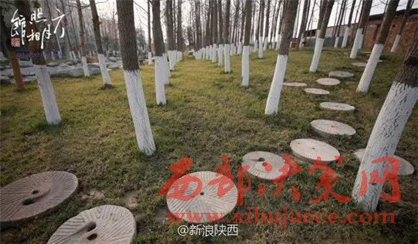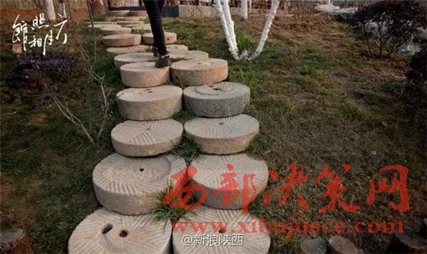 在西安,有人把這些磨盤鋪成了道路,還建成了公園讓人參觀。