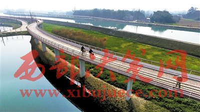 昨日上午,陽(yáng)光明媚,記者來(lái)到剛剛建成的三道堰徐堰河濕地公園,河水清澈見(jiàn)底,河面上微風(fēng)吹拂,楊柳依依,白鷺飛翔,漣漪浪翻?,F(xiàn)場(chǎng),一座飛架于河面兩側(cè)的“空中綠道”格外引人注目,三道堰鎮(zhèn)工作人員介紹,這座“空中綠道”南側(cè)全長(zhǎng)891米,北側(cè)全長(zhǎng)1300米,從空中俯瞰猶如雙龍飲水、長(zhǎng)虹臥波,取名為“雙虹橋”。該橋?qū)?.5米,可供兩人并肩騎行,這條風(fēng)景獨(dú)特的“空中綠道”才建成開(kāi)放,就已經(jīng)吸引了四面八方的游客前來(lái)體驗(yàn)新鮮,跑步的、散步的、騎行的市民絡(luò)繹不絕。“我們昨天晚上到了這里,橋面沿線(xiàn)彩燈四射,像極了夜空中的彩虹,太美了。”來(lái)自天府安公騎游俱樂(lè)部的熊大爺說(shuō),他們?cè)?jì)劃是一早返回成都,但因?yàn)檫@里的景色太美,一早便騎行到這里希望見(jiàn)到白天的景色。熊大爺在橋上向下望去,一處處水鄉(xiāng)田園美景映入眼簾,人們的跑步聲、嘖嘖的贊美聲傳入耳畔……“這樣的景色使人格外地陶醉!”