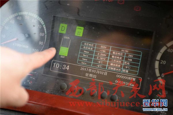 3月2日,圖為純電動公交車的儀表盤上顯示的剩余電量。