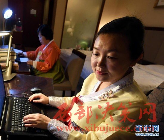 由中國民族語文翻譯局組建的十二屆全國人大五次會議和全國政協(xié)十二屆五次會議秘書處民族語文翻譯組,承擔(dān)著大會民族語文翻譯任務(wù)。他們的主要工作包括:用蒙古、藏、維吾爾、哈薩克、朝鮮、彝、壯7種民族語文進行大會文件的翻譯;負責(zé)7種民族語文大會文件的印制;舉行全體會議時,進行現(xiàn)場同聲傳譯;負責(zé)向北京、內(nèi)蒙古、廣西、四川、西藏、青海、新疆等省區(qū)市新聞媒體提供大會主要文件的民族文譯稿等。圖為3月7日晚,民族語文翻譯組工作人員牧蘭、敖敦高娃、哈斯布日古德(從左至右)在為第二天的大會同聲傳譯做準備。