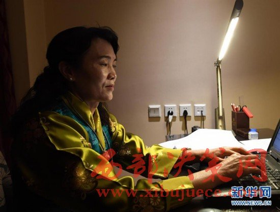 3月7日晚,民族語文翻譯組工作人員劉友珍在翻譯大會文件。