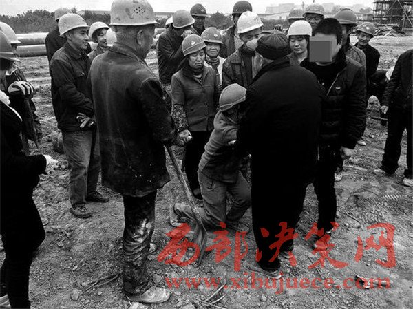 “大爺大媽,我給您跪下了,求求您們了,就讓我們干吧!”就在記者準(zhǔn)備找工地負(fù)責(zé)人了解情況時(shí),一男一女兩位農(nóng)民工突然撲通一聲跪倒在地,抓著其中一位老人的手哭著求情。“我們大伙都給您們跪下了,我們都是下苦人不容易……”看到有人跪地求情,其他農(nóng)民工也齊刷刷跪倒在阻擋者中的兩位老人面前,哭求開恩讓他們干活養(yǎng)家糊口。突如其來(lái)的變故,讓阻擋施工的5個(gè)人頓時(shí)慌了手腳。