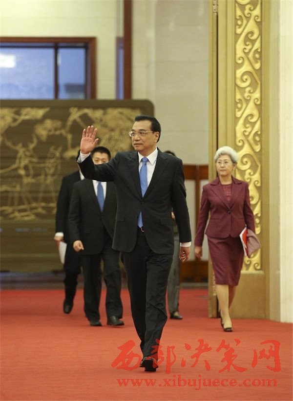 李克強(qiáng)步入人民大會堂三樓金色大廳會見中外記者