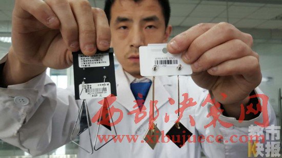 在西安小寨,無論是大商場,還是街邊小店,琳瑯滿目的飾品店可以說是很多女生的最愛。其中各式各樣的耳環(huán),尤其招人喜歡,低廉的價格,多樣的造型,成了每家店必賣的商品。不過,在購買之前,商家的嘴邊都少不了兩個字:過敏。