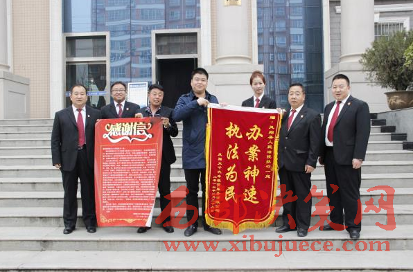 西部決策網(wǎng)訊(帥華鋒 劉恒)3月20日上午,鳳翔大千汽車租賃有限公司總經(jīng)理王某專程送來 “辦案神速 執(zhí)法為民”的錦旗與感謝信,向鳳翔法院執(zhí)行一庭干警王宏斌及執(zhí)行局全體干警表達(dá)謝意,感謝他們在辦案中不辭辛苦,公正執(zhí)法,有力的維護了當(dāng)事人合法權(quán)益。