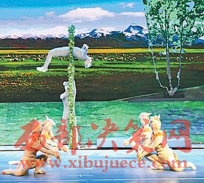一個(gè)個(gè)驚險(xiǎn)刺激的雜技表演,一段段奔放激情的藏韻舞蹈,令觀眾目不暇接。27名玉樹歌舞演員,38名安徽雜技演員,在舞臺上高度默契,完美呈現(xiàn)了《雪豹王子》的藝術(shù)構(gòu)思。