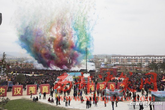 活動現(xiàn)場,人潮涌動。舞龍舞獅、威風(fēng)鑼鼓、漢調(diào)桄桄、智果懸臺社火等民俗活動吸引了男女老少的層層圍觀。