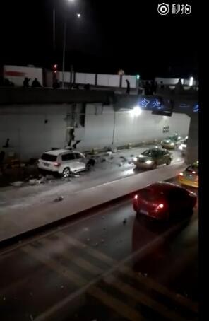 凌晨時(shí)分,隧道上方突然有一輛越野車撞斷護(hù)欄墜入隧道,翻滾后逆向停了下來,車內(nèi)司機(jī)和兩名女孩受傷。