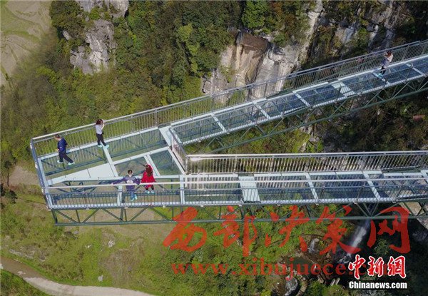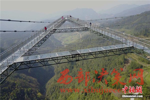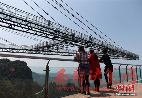4月6日,重慶一景區(qū)內(nèi)“天空懸廊”吸引眾多市民前往體驗(yàn)。懸廊成“A”字形,橋面鋪設(shè)全透明玻璃,由于懸空于近300米高的懸崖峭壁之上,又沿懸崖向外延伸在80米的空中,因此取名為“天空懸廊”。相比美國(guó)科羅拉多觀景廊橋向外懸挑21米,天空懸廊向外懸挑80米更為驚險(xiǎn)刺激。目前,該項(xiàng)目正在申請(qǐng)吉尼斯世界紀(jì)錄。