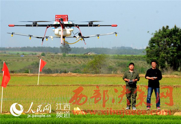 4月18日,江西省奉新縣宋埠鎮(zhèn)橋頭村奉新縣建華農(nóng)機(jī)合作社的稻田上空,數(shù)架無人機(jī)正在“嗡嗡”作業(yè),農(nóng)技員正在展示植保無人機(jī)噴灑農(nóng)藥的功能。