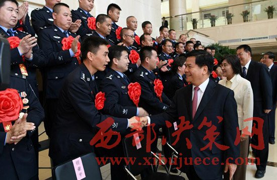 自治區(qū)黨政辦公區(qū)會議中心一樓大廳內,全國公安系統(tǒng)英雄模范立功集體內蒙古受獎單位代表和個人著裝整齊、精神抖擻,胸前的榮譽獎章和大紅花格外醒目。在熱烈的掌聲中,李紀恒等來到代表們中間,同大家熱情握手,親切交流,并合影留念。李紀恒深情地說,看到你們一個個英姿颯爽、氣宇軒昂的樣子,我很受感染和鼓舞;聽到你們一件件舍生忘死、感人肺腑的事跡,我很受感動和教育。希望大家珍惜榮譽、再接再厲,繼續(xù)發(fā)揮示范帶動和榜樣引領作用,激勵全區(qū)公安機關和公安隊伍更好擔負起黨和人民賦予的重大使命。