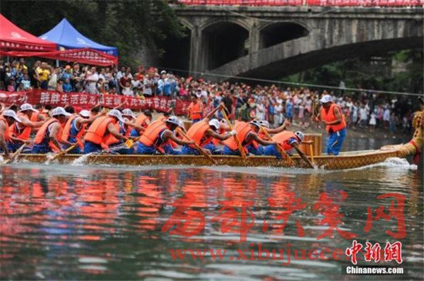 2016年6月9日,農(nóng)歷五月初五端午節(jié),極具中華傳統(tǒng)文化魅力的賽龍舟在貴州省岑鞏縣龍?zhí)镦?zhèn)舉行,共度端午節(jié)。